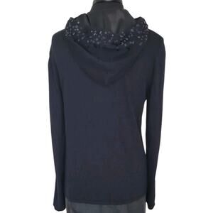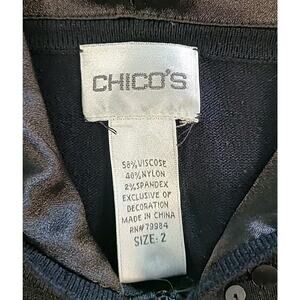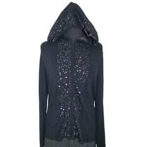 Chico’s Women’s Hoodie Sz 2 L Black Sequin Trim Zip Cardigan Jacket Flaw