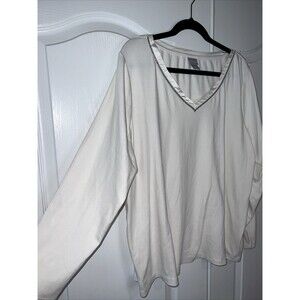 Chico's Womens Ivory Long Sleeve V-Neck T-Shirt Blouse Sz 4 XXL Stretch Sparkle