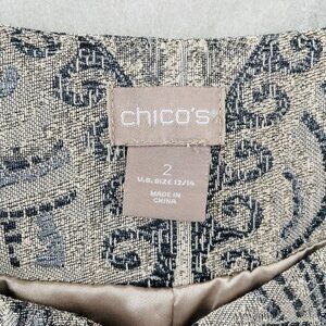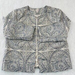 Chico's Womens Ivory Luxurious Metallic Jacquard Open Front Jacket Sz 2 US 12/14