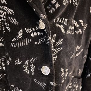 Chicos Womens Jacket 3 Black Silver Velvet Embroidered 2-Button Blazer Lined L