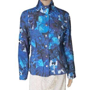 Chico's Women's Jacket Blue Multi Floral Snap Front Mock Neck size 1
