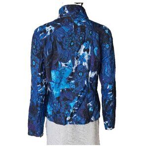 Chico's Women's Jacket Blue Multi Floral Snap Front Mock Neck.