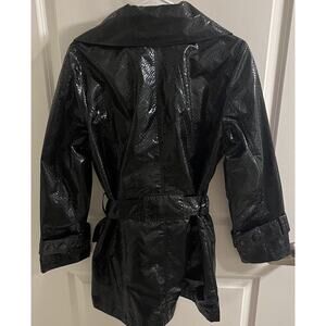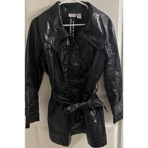 Chico’s Womens Jacket Coat Sz 2 Black Snake Print Mid Length Belted Lightweight