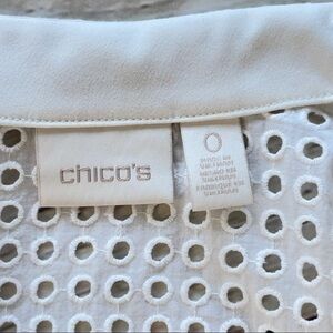 Excellent like new condition Chico’s Women’s Jacket Eyelet Antique White 3/4 Sleeve Size 0 / 4-6. Unlined. Polyester/cotton. Machine wash