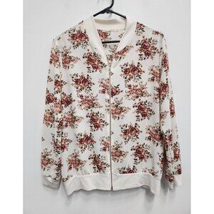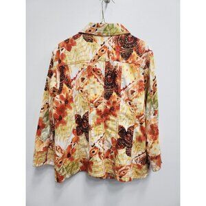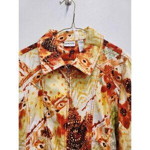 Chicos Womens Jacket Large Orange Yellow Floral Collared Full Zip Lightweight