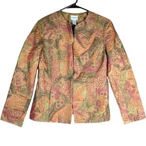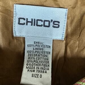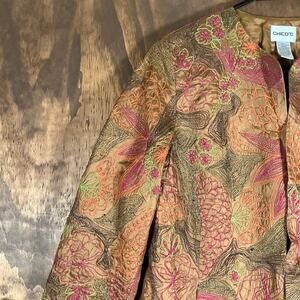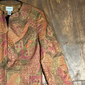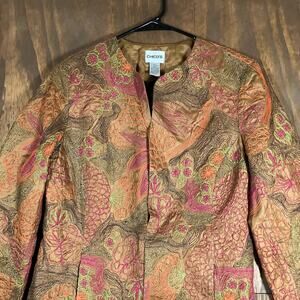 Chicos Womens Jacket Orange Brown Floral Embroidered Hook & Eye Closure 0 (S)
