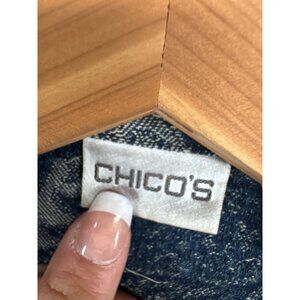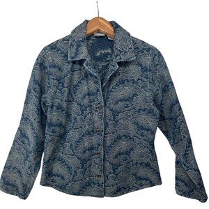 Chicos Womens Jacket S Blue Cotton Brocade Tapestry Paisley Floral Boho Classic