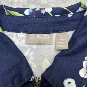 Chico's Women’s Jacket Size 2 (L 12) Floral Poplin Cotton Zip-Up Layer Blazer