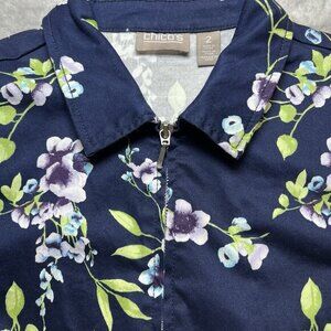 Keywords: Chico's jacket, women's large, size 12, floral jacket, poplin cotton, zip up, layer, blazer, spring jacket, casual jacket, excellent condition, ladies outerwear.