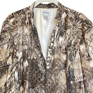 Chicos Womens Jacket Size 2 US L Brown Black Abstract Paisley Silk Blend Blazer