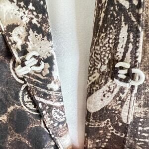 tags: Chico’s jacket, abstract paisley jacket, silk blend blazer, boho Asian frog closure, artsy statement jacket, neutral print topper, Chico’s size 2 L, vintage-inspired jacket, festival layering piece