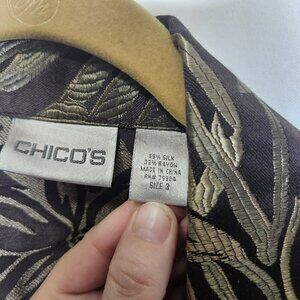 Chico's Women's Jacket Size 3 L Floral Silk Rayon Brown Long Sleeve Classic