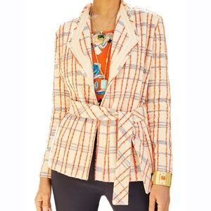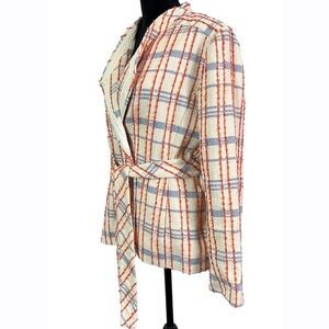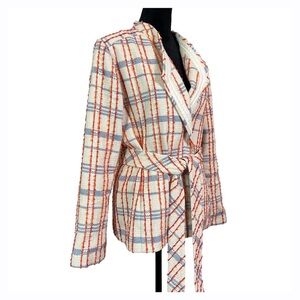 New with tags, Chico’s open front belted tweed jacket. Women’s Size 1 or US size 8.