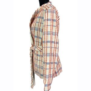 Chico’s Womens Jacquard Tweed Fusion Stripe Jacket Cream Orange Size 8 Small
