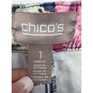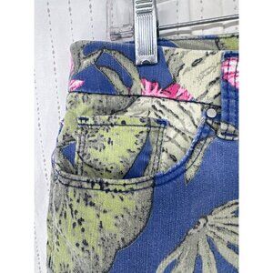 Chicos Womens Jeans Sz 1 S Blue Tropical Floral Stretch Pockets Casual Fun Retro