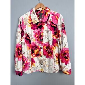 Chico's Womens L Jacket Floral Art to Wear Stretch Colorful Casual Preppy Spring