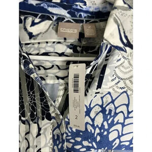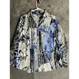 Chicos Womens L Sophia Floral Stripe Button Up Blouse Top Roll Tab Silky Career
