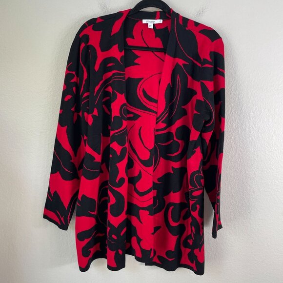 Chicos Womens Large Black Red Open Front Cardigan Jacket Floral