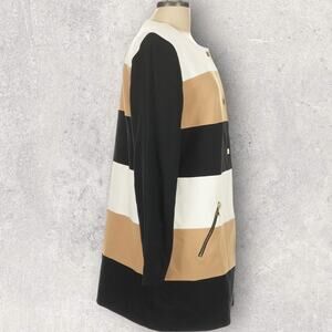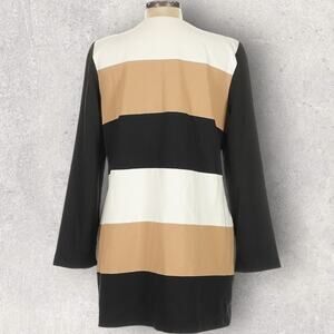 Chico’s Women’s Large Colorblock Long Coat Jacket Black Tan White Modern Chic