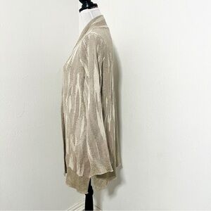 Chicos Women’s Large Open Cardigan Mid Sweater Gold Beige Shimmer Glitter EUC