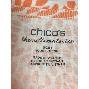 Chico's Womens Leaf Print Short Sleeve Ultimate Tee T-Shirt White Orange Size 1. Size medium 8