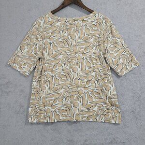 Chico's Womens Leaf Print Top 2/ L Pima Cotton Beige Black JCT