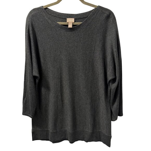 Chicos Womens Lightweight Gray Sweater Size M Rayon/Nylon/Cashmere Blend