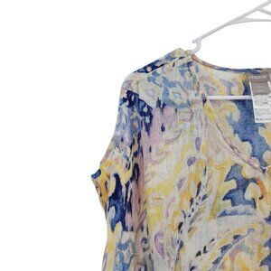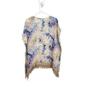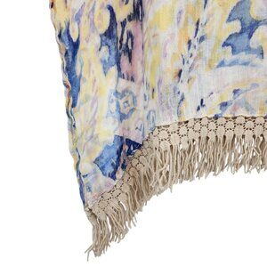 Chico's Women's Lightweight Hand Painted Linen Fringe Poncho - S/M