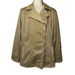 Chicos Womens Lightweight Moto Hip Length Full Zip Coat Jacket Green Sz 2 Lrg 12
