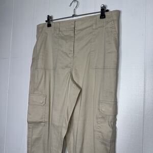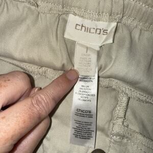 Chico’s Women’s Linen Blend Khaki Crop Cargo Pants Size 1 Medium