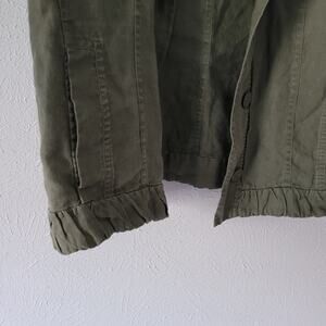 Chico's Women's Linen Button Up Lagen look Jacket in army green