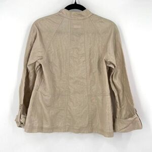 Chico's Women's Linen Cotton Blend Roll-Tab Blazer Jacket Gold Metallic Medium