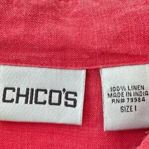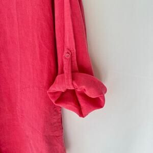 Chico's Womens Linen Tunic Shirt M Oversized Beachy Coastal Roll Tab Sleeve Pink
