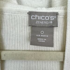 Chico's Womens Long Cardigan Hooded Sweater Size S Striped Neutral Cashmere Gray