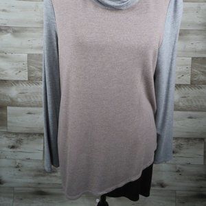 Chico's* Women's Long Sleeve Cowl Neck Asymmetrical Abstract Hem Blouse~ Size 1