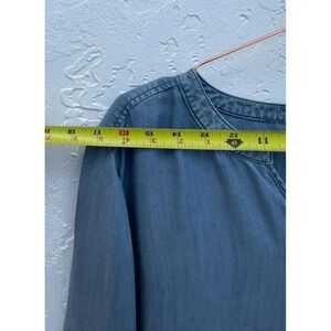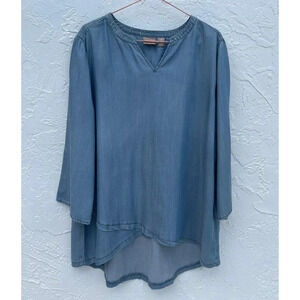Chicos Womens Long Sleeve High Low Asymmetrical Denim Blue Top Sz 3
