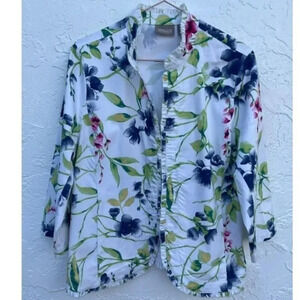 Chicos Womens Long Sleeve Printed Floral Jacket Sz 2