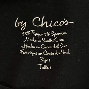 The Women's Long-Sleeve Black Blouse from Chico's is your go-to for effortless style and comfort. Crafted from a soft blend of rayon and spandex, this blouse offers a flattering fit with just the right amount of stretch. The classic round neck and solid black color make it versatile enough for any occasion, whether you're heading to the office or out for a casual dinner. Plus, it's machine washable for easy care. This pre-owned blouse is in excellent condition, ready to become a staple in your wardrobe.