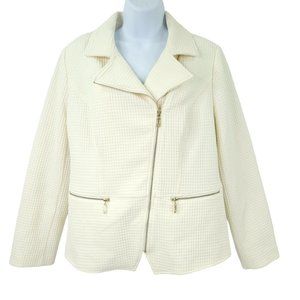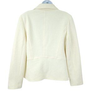 Chicos Womens Lt Cream Jacket Size M 8 Front Zip Waffle Knit Pockets Career Work