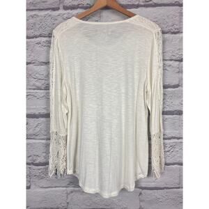 Chico's Womens M Boho Peasant Feminine Romantic Fairycore Lace Sleeve Knit Top