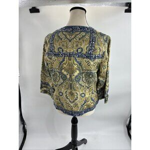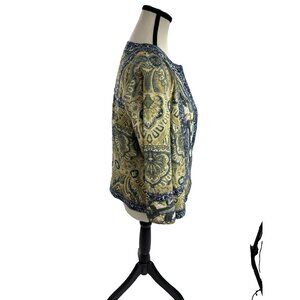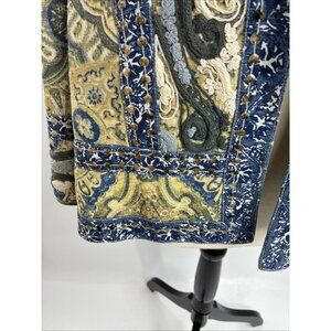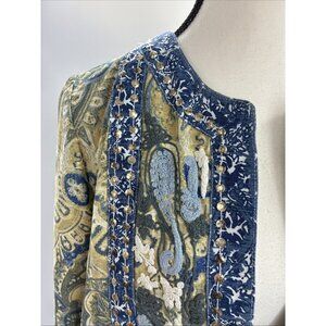 Chicos Womens M Paisley Brocade Jacket Open Front 3/4 Sleeve Boho Blue Green
