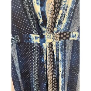 Chico’s Womens Maxi Dress Size Medium Blue Patchwork Americana Boho Office Work