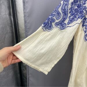 Chico's Women's Medium Gauze Embroidered Gauze Top Beach Reef Boho