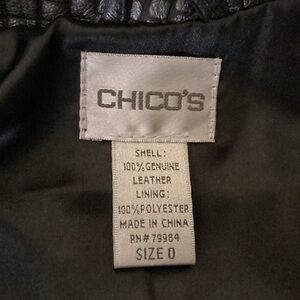 Chico’s Women’s Metallic Snake Skin 100% Leather Jacket. Size 0. There is a small spot on front. See pics. Shoulder to shoulder 16”, armpit to armpit 18”, neck to hem 23”, shoulder to cuff 24”. Good used condition.
