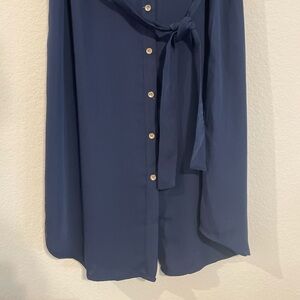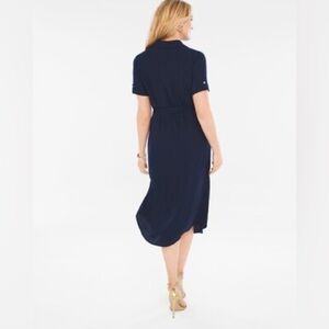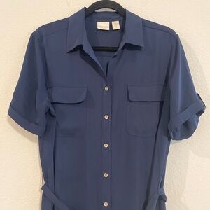 Chico's Blue Lightweight Button Front Tie Belt Midi Dress