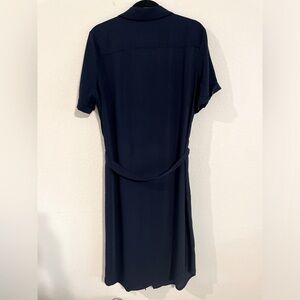Office to evening, this dress won't let you down. Its utility details offer that perfect combination of functional-enough-for-work and chic-enough-for-cocktail-hour. The soft midi design is finished with chest pockets, roll-tab sleeves and a tie belt at the waist.