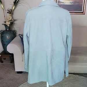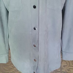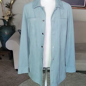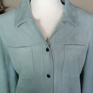Chico's Women's Mint Green Faux Leather Shacket Shirt Size 2 or 12/14