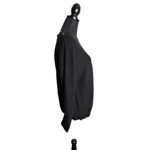 This elegant black pullover sweater from Chico's is designed with a modern ribbed texture and relaxed silhouette. The versatile style can be dressed up or down, perfect for work, casual wear, or evenings out.