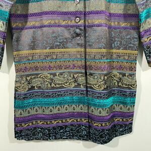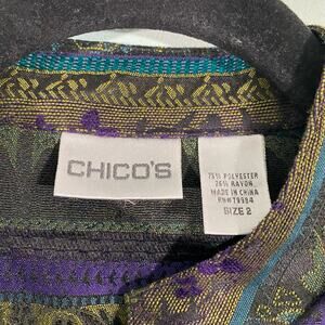 Chico's Women's Multicolor Jacquard Tapestry Knee Length Button Up Coat Sz 2 (L)