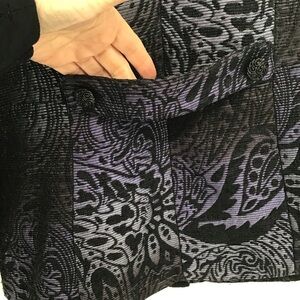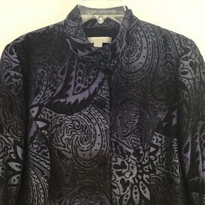Chico’s Women’s Muse Paisley Button-Up Blazer Jacket Career Black/Blue/ Purple Size 2